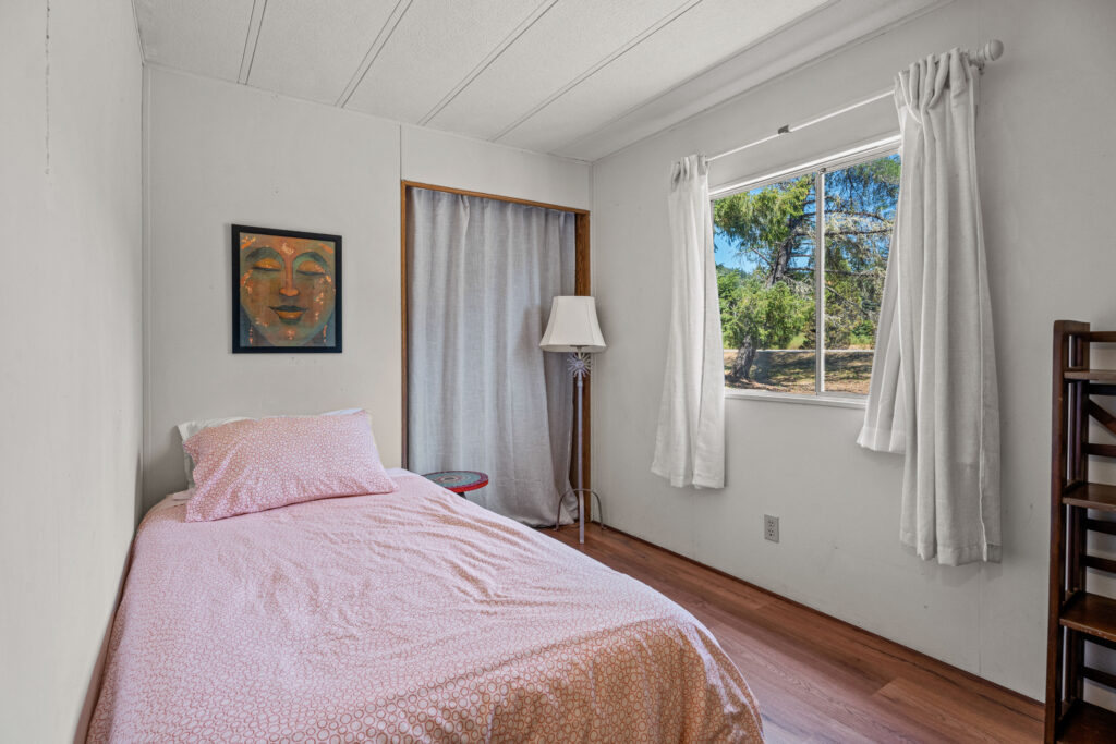 The Small Room in the River House is designed for a single guest. This cozy room is part of a charming three-bedroom, two-bathroom house that features a back deck overlooking the Eel River.