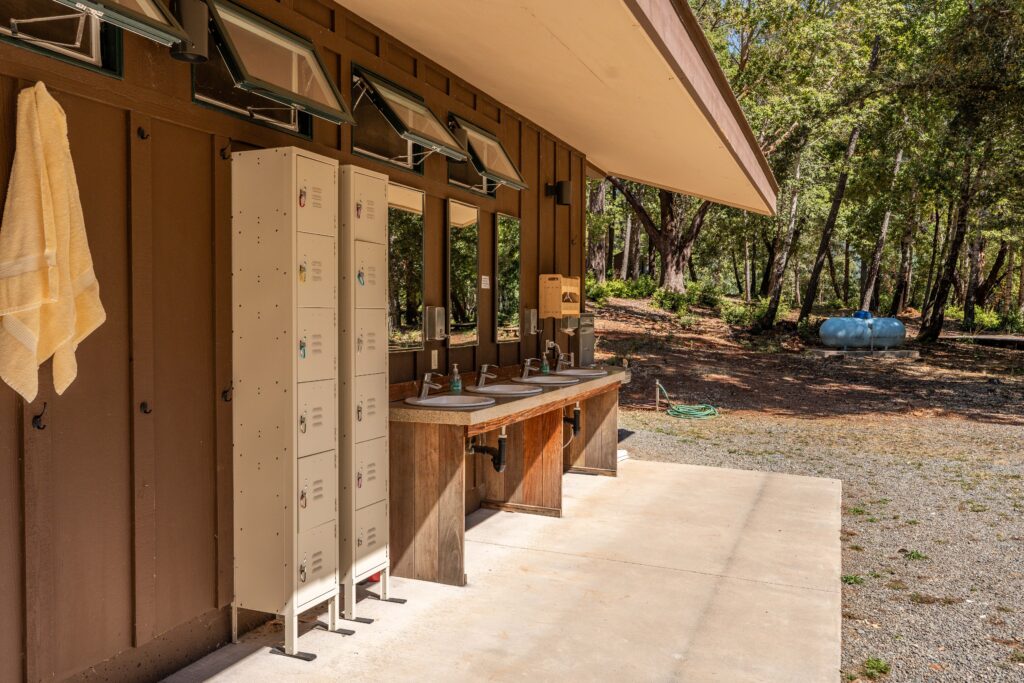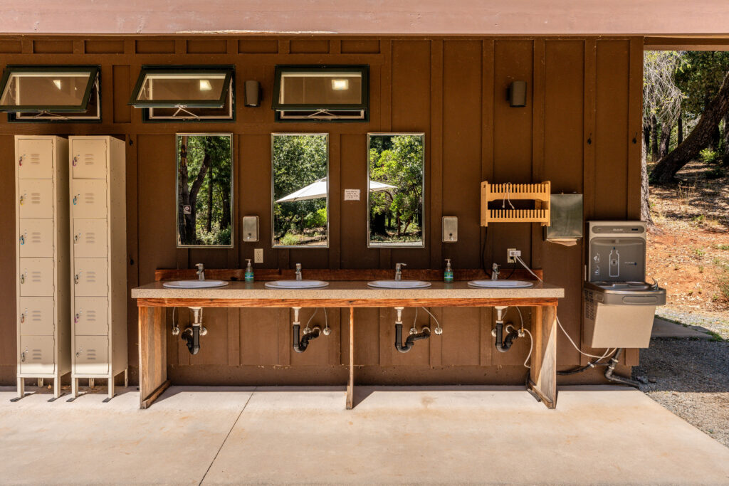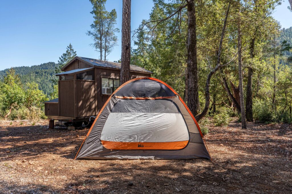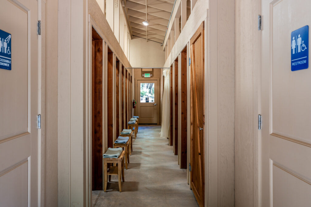 - Open dormitory area with individual pop-up privacy tents around each bed